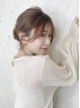 こなれ感のあるヘアアップスタイル首元をすっきりしつつ、後れ毛でゆるっとした雰囲気を出しています。前髪顔まわり、後れ毛のカットにもこだわっています。カラーはあたたかみのある暖色ブラウン