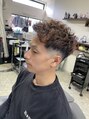 メンズショートパーマスタイルになります。2ブロックの刈り上げはフェードカットを施し、上のパーマを生かすようなブロッキングの位置でカットしました!セットはタオルドライした後、ドライヤーを使わずバーム系のスタイリング剤を揉み込んで完成です!