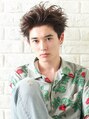 ピンパーマで根元から癖をつけたアップバングヘアです。少しマットな質感のワックスを使用するのがオススメです^ ^ベースのカットはマッシュショートなので、あげてもおろしてもカッコいいヘアを楽しんでください。