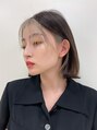 形はシンプルなワンレンボブで丸みのある柔らかい雰囲気ですがフェイスフレーミングとうざバングで今っぽい抜け感のあるスタイルです。ブリーチの範囲が少ないのでトータルのダメージも最小限に明るいカラーが楽しめるのでオススメ☆