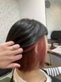 ピンクレッドで可愛いインナーカラーに!表面は地毛の黒をいかしプリンがめだたないようにしています!
