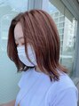 ピンク系カラーからできるだけ赤みをとってベージュカラーで明るくしました。ストレートベースに毛先を外はねにしたシンプルで大人っぽいスタイリングです♪