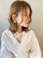 透明感と肌馴染みの良いシアベージュカラーに、たっぷり動きのあるレイヤーをオン。大きく動くウェーブが可愛いミディアムスタイルは、外ハネ感を残しつつ耳掛けで抜け感をプラスすることで柔らかい印象に。