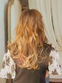 ハイトーンのロングスタイル。前髪があるスタイルなので重たさが出ないようにカラーはオレンジ系のブラウンに。毛先にかけて明るくなるような自然なグラデーションになるようにしてあげるととても柔らかい印象になります。【稲毛】