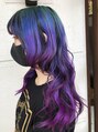アメージンググラデーション×ウルフレイヤースタイル。グリーン&ブルー&ヴォイオレットベースに変わる技術の必要なデザインカラーになります。