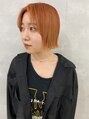 ハイトーンカラーのイエローオレンジのパキッとしたカラー に襟足ギリギリの長さのぱっつんボブ。前髪は長めでふんわりあげおろしをミックスしました