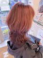 白髪をぼかすためにハイライトを入れて、ピンクオレンジをオン♪白髪があってもオシャレに個性的に☆