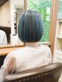変化に富んだ奇岩・岩礁の多い美しい岩美の海岸をイメージしたヘアカラー。岩を連想させるダークグレイと、海を思わせる緑がかった深い青を髪の中で複雑にミックスさせました。