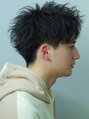 ツーブロックと刈り上げを、施して前髪を上げやすい様にカット。Cカールパーマで束感を出しやすく!