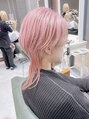 全頭を低ダメージブリーチで綺麗に抜いてから、オリジナルカラー剤透明感カラーの をのせたブリーチデザインカラー☆色素が薄くなり抜け感がでる透明感カラーご相談ください