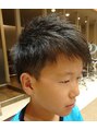 お子様でもできるスタイルです。アシンメトリーに作っているので少量のWaxでも整います。