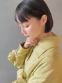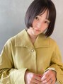 シンプルなボブのラインにフェイスラインにレイヤーを入れてポイントに。前髪に束感を出すことで暗めのカラーを重たく見せず、軽い質感に。マンネリしがちなボブスタイルもフロントの印象で変化をプラス。