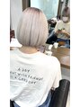 - トリプルカラー ケアブリーチ使用/オージュアトリートメント/Xトリートメント/ショートヘア/ぱっつんボブ