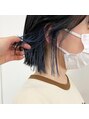 インナーカラーにブルーを入れています!さりげなくちらちらと見えるようにしていれています!インナーの部分はブリーチ必須です。