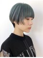 オーバーセクションをターコイズアンダーをブラックに。サイドのインナーにホワイトグレーを忍ばせたオンリーワンなアシメショートヘア☆