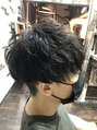 軽めのマッシュスタイルに、緩めのソフトツイストスパイラルパーマをかけました!マット系のWax、ツヤありWaxどちらも似合うスタイルです。柔らかくも男性らしいキリッとしたスタイルになります!