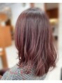 似合うイメージがフェミニンなのでカラーは暖色系のカラーでしっかりカラーリングしました。フェミニンタイプの方はミディアムヘアが似合うので腰位のロングヘアをバッサリ切り、巻いた時に動きを出しやすく若干段を入れて毛先と軽くしました。