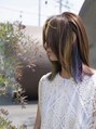 軽く動く髪から見えるライムイエローのカラーがおしゃれなヘアスタイル。インパクトのあるカラーもインナーに入れると合わせやすいですよ。