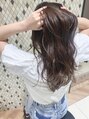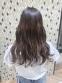 カットはワンレンベース。9トーンのラベンダーベージュで、透け感カラー。波ウエーブ仕上げ(EARTH恵比寿)