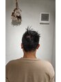 サイドとバックはぼかし気味の刈り上げ。トップは立ち上がりが出るようにカットしました。