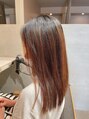 髪のきれいさを楽しめるセミロングスタイル。ナチュラルなツヤ感、透明感のある髪色で。