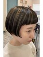 表面は黒をのこしてすぐ内側にハイライトを入れたコンパクトなボブもみあげの毛を短くしてあるので、耳にかけると雰囲気がすごく変わります!