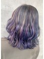シルバー系の色味をベースに、紫、青、ピンクをランダムにいれた王道のユニコーンカラー!最初に少し濃いめに入れてあげることで色落ちもしっかり楽しんでいくことができます♪ユニコーン部分をつまんでから巻いてあげるとハイライト効果も♪