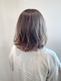 シンプルな切りっぱなしボブ。トップにほんのりレイヤーを入れてふわっと動きやすいようにカットしました。カラーは気先のブリーチ毛を生かしヌーディなベージュをいれました。