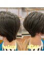 720℃どこから見ても美しいシルエットのショートです。全体に丸み感のあるふんわりとした自然なボリュームを作りました。質感を軽くすることで柔らかく透明感のある質感に。幅広い世代の女性に支持されている正統派!襟足スッキリのショートです。