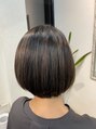 普通の伸ばしかけのボブですが、ハイライトのダメージ毛にツヤのあるサンドグレーでジュエリーカラー