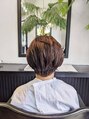 ベースはブラントカットでシルエットを作り、質感調節で柔らかさを出しました。ショートの王道の丸いシルエットとバックをくびれさせる事で骨格補正とメリハリをつけてます。