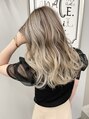 エアータッチバレイヤージュでハイトーンのベースに!暗い影を作り外国人風に仕上げておりますので、褪色が綺麗に、そしてプリンが気にならなくしております。毛先はグラデーションになっています。ベースカラーはホワイトミルクティーベージュ