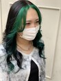 顔周りのワンブリーチです。塩基性のカラーではっきりグリーンを入れ、ベースほ抑えめのカラーで合わせてあります。