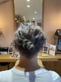 ワンブリーチのみで作るグレーシルバーです!パーマではしっかりとウェーブをだしてかっこよくしてます♪