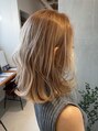 ケアブリーチのうえにオンカラーは柔らかいパールベージュ