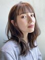 32ミリでウェーブ巻き。【気に入ったスタイルは「ブックマークする」ボタンを押して、ご来店時ご提示ください】切りっぱなしロブ,抜け感,くせ毛カット,小顔ボブ,ショコラベージュ,ヘムライト,かき上げ,くびれヘア,ミニウルフ,イヤリングカラー