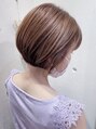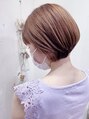 丸みがあって裾が小さくキュッとなってる可愛いらしいショートボブ。カラーは可愛いピンクベージュで大人可愛い色に。