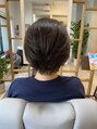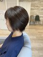 手入れがラクな前下がりショートボブ。オリーブブラウンで艶感アップ。