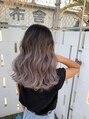 ★全体にエアタッチしたバレィヤージュ。3枚の写真も撮る場所によって雰囲気も違いますね。根元にかけて暗く仕上げてるのでプリンも気にならず放置可能なスタイル。色落ちしてきたら根元は染めずにオンカラーすれば、またデザインを楽しめるよ★