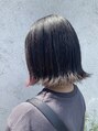 肩上の切りっぱなしボブにイヤリングカラーでボルドーカラーに♪