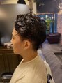 上には強めにバックに流すパーマをかけて周りはツーブロックにして後ろも刈り上げたスタイルです。<理容室>[メンズ/床屋/シェービング/ヘッドスパ/田町/芝浦]