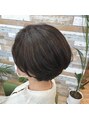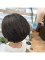 カット、極艶♪ウルティア修復マグネットカラー。後ろを刈り上げた、サイド前下がりの、ショートボブ。リタッチカラーしながらマグネットトリートメントを同時にチャージ。おさまりよくツヤツヤ♪