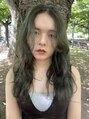 シダーを想起させるビリジアン系のグリーン。秋冬のメイクにも相性が良く、トレンド感もあり。根元はあえてブリーチのリタッチをしておらず、自然な仕上がりで毎度ブリーチリタッチしている方には色を問わず、是非試していただきたいワンカラーです。