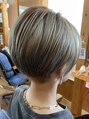 襟足をすっきりソフトに刈り上げたハンサムショート♪カラーはブリーチしてハニーシルバーで透明感たっぷりに☆