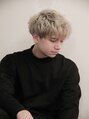 ハイトーンベージュに細かい束を造ることによりクール感をプラス。まだまだ根強いネープレスでトレンドを意識している。スタイリング剤はハードワックスで散らすようにすると更にかっこよくきまります。