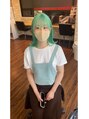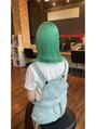 流行りのミントグリーン★ブリーチで18.5明度ほど削ると退色後もキレイに色が保てるため、しっかり均一に抜ききるブリーチが必要となります^^