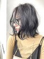 裾は厚みを出して切りっぱなしボブベースに表面のみレイヤーを入れて、柔らかいくびれを作り、ひし形に。ヨシンモリ/ハイライトカラー/前下がりショート/くすみブルー/ボブウルフ/韓国ヘア/モーヴカラー/こなれヘア/グレージュカラー/透明感/かきあげバング