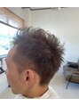 カットはツーブロックのソフトモヒカンカラーはシルバーアッシュ系