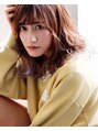 ハイトーンで柔らかく見えるカラー。肩で跳ねるワンレングスラインで外ハネしやすくカット。前髪の横にサイドバングを作ることで小顔に顔回りこだわってます。波ウェーブとミックス巻きを合わせてます。