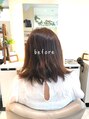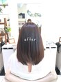 クセのうねりと毛先が外にハネるのをどうにかしたいけど、ブリーチしてるし縮毛矯正を断られてしまって、どうにかこうにか縮毛矯正できないか?と探して来店してくださったお客様。クセを抑える事で毛先の外ハネは改善されて内巻きになります。